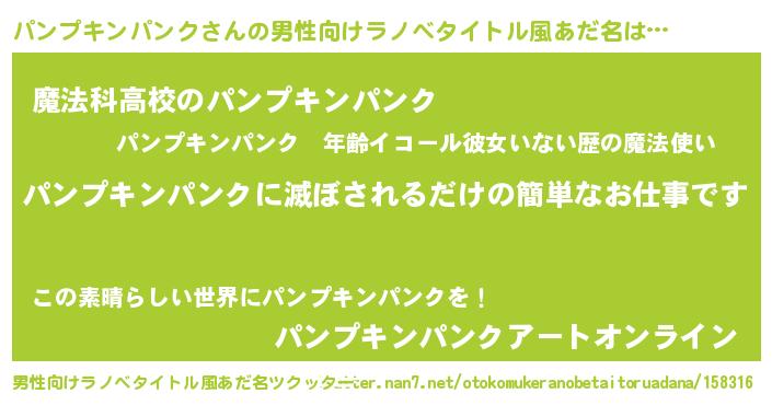 | 意味不明あだ名 | 『自称パンプキンパンク』 |