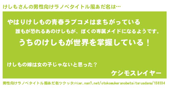 | 胡散臭い通販商品みたいなあだ名 | 『運命の人と巡り会える高級そうな壺…その名も「けしも」』 |