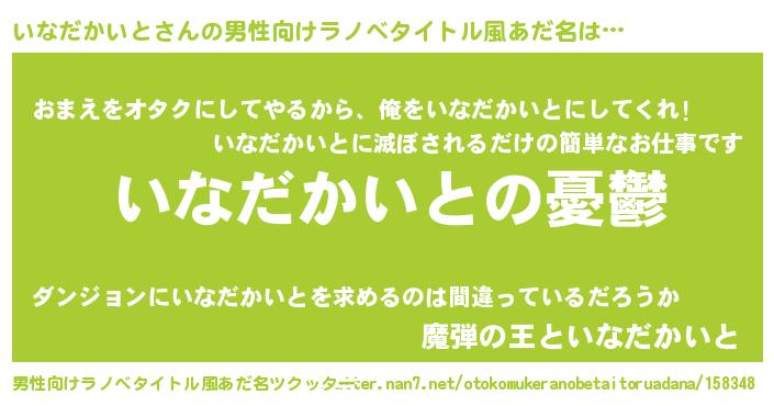 | 胡散臭い通販商品みたいなあだ名 | 『必ず成功する霊験あらたかなお札…その名も「いなだかいと」』 |