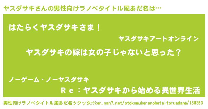 | 胡散臭い通販商品みたいなあだ名 | 『全米が絶賛したサプリメント…その名も「ヤスダサキ」』 |