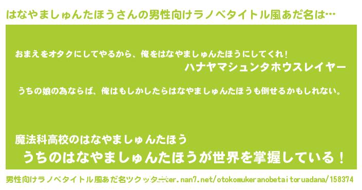 | ファンタジー風あだ名 | 『エターナルハナヤマシュンタホウー』 |