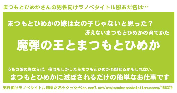 | 女子向けラノベタイトル風あだ名 | 『まつもとひめかが死なない童話 林檎のまつもとひめかの診療簿』 |