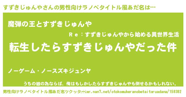 | 女子向けラノベタイトル風あだ名 | 『婚約破棄系悪役すずきじゅんやに転生したので、保身に走りました。』 |