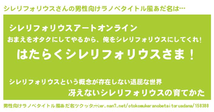 シレリフォリウスさんの男性向けラノベタイトル風あだ名をツクッター!