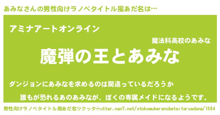 | 女子向けラノベタイトル風あだ名 | 『あみなが死なない童話 林檎のあみなの診療簿』 |