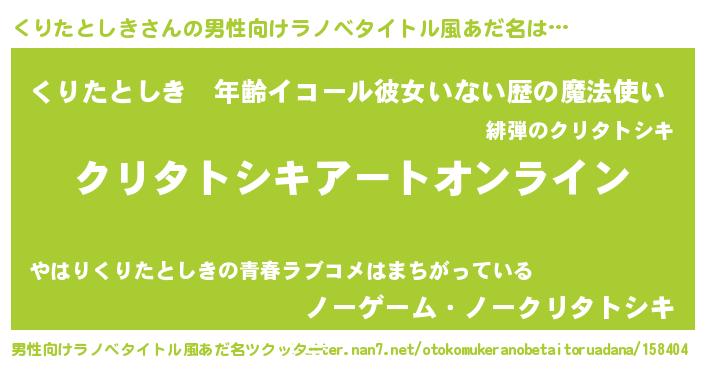 | 女子向けラノベタイトル風あだ名 | 『誰かこのくりたとしきを説明してください! ~契約から始まるウェディング~』 |