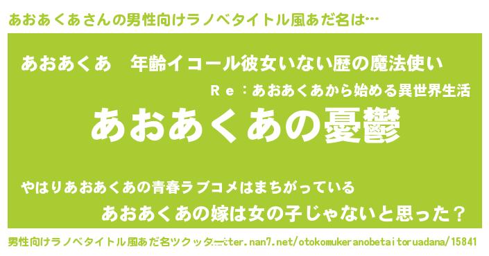 | 胡散臭い通販商品みたいなあだ名 | 『必ず成功するブレスレット…その名も「あおあくあ」』 |
