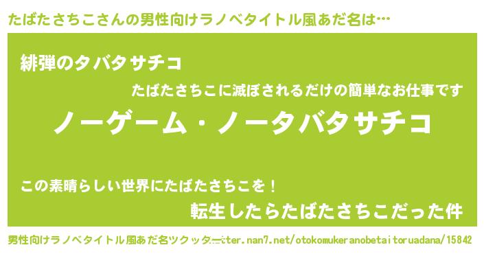 | 伝説のあだ名 | 『救世主となる錬金術士たばたさちこ』 |