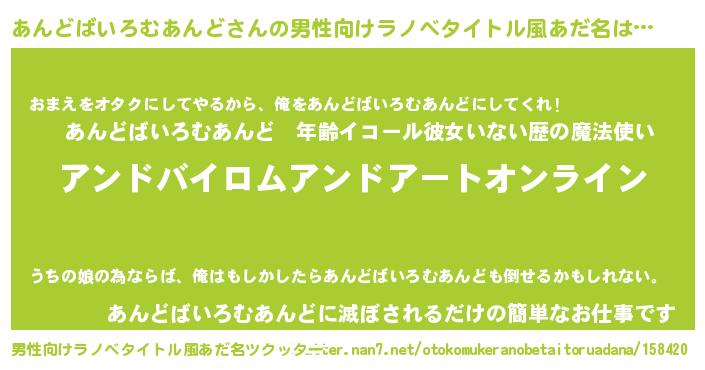 | 胡散臭い通販商品みたいなあだ名 | 『億万長者になれる水晶球…その名も「あんどばいろむあんど」』 |