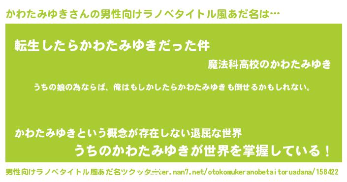 | 女子向けラノベタイトル風あだ名 | 『かわたみゆきの婚約者』 |