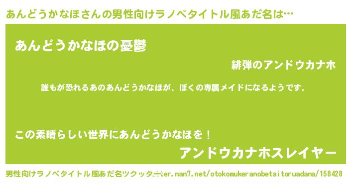 | ヘコむあだ名 | 『あんどうかなほ(笑)』『あんもー』 |