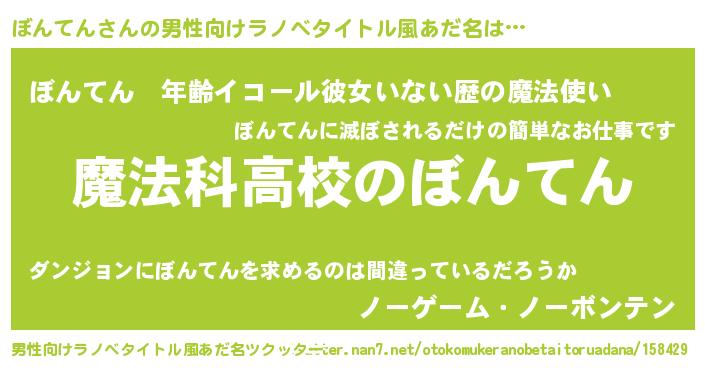 | 意味不明あだ名 | 『自称ぼんてん』『ニラ科ぼんてん属』 |