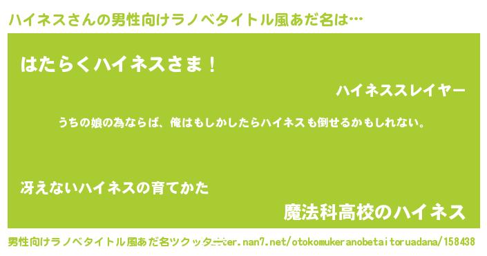 ハイネスさんの男性向けラノベタイトル風あだ名をツクッター!
