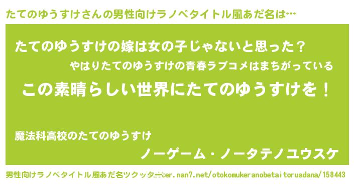 | 女子向けラノベタイトル風あだ名 | 『悪役たてのゆうすけに転生したようですが、知った事ではありません』 |