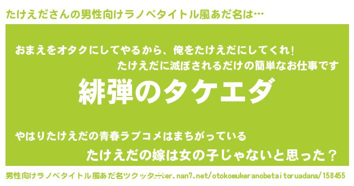 | ヒーロー風カッコイイあだ名 | 『正義の使者たけえだ』『暗黒騎士タケ』 |