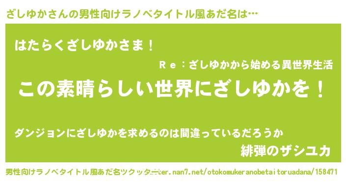 | 意味不明あだ名 | 『住所不定無職ざしゆか(98歳)』 |
