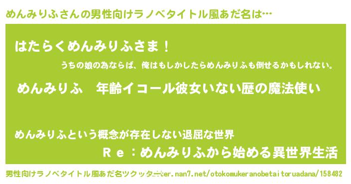 | 胡散臭い通販商品みたいなあだ名 | 『芸能人もオススメするアガリクス…その名も「めんみりふ」』 |