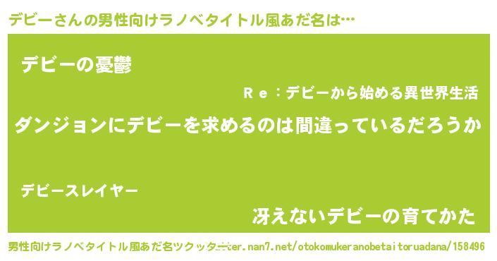 | 女子向けラノベタイトル風あだ名 | 『デビーは平凡を望む』『闇のデビー』 |