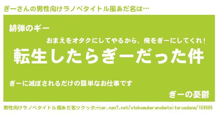 | 胡散臭い通販商品みたいなあだ名 | 『モテモテ間違いなし水晶球…その名も「ぎー」』 |