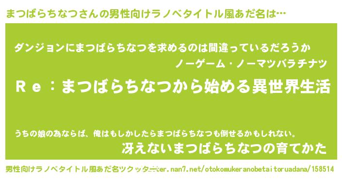 | 女子向けラノベタイトル風あだ名 | 『闇のまつばらちなつ』 |