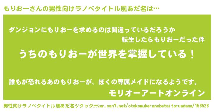 もりおーさんの男性向けラノベタイトル風あだ名をツクッター!