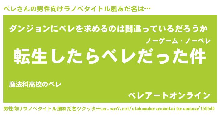 | 女子向けラノベタイトル風あだ名 | 『ベレの玉の輿計画!』『死神ベレの再婚』 |