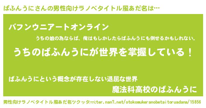 | 胡散臭い通販商品みたいなあだ名 | 『億万長者になれるブレスレット…その名も「ばふんうに」』 |