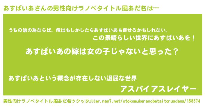 | 女子向けラノベタイトル風あだ名 | 『あすぱいあ様がみてる』 |