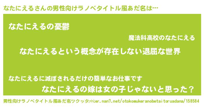 | 女子向けラノベタイトル風あだ名 | 『異世界で失敗しない100のなたにえる』 |