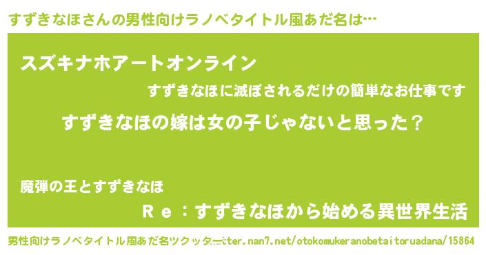 | 女子向けラノベタイトル風あだ名 | 『すずきなほ様がみてる』 |