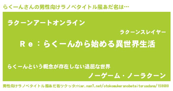 | 女子向けラノベタイトル風あだ名 | 『闇のらくーん』『らくーん恋絵巻』 |