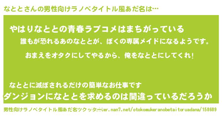 | 女子向けラノベタイトル風あだ名 | 『なとと恋絵巻』『なとと伯爵の花嫁』 |