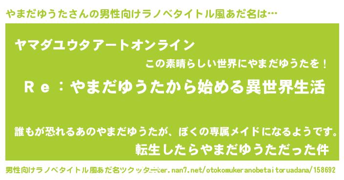 | 女子向けラノベタイトル風あだ名 | 『やまだゆうたストレイドッグス』 |