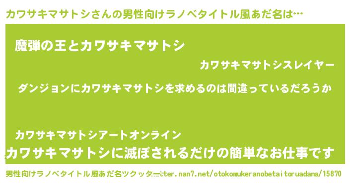 | 意味不明あだ名 | 『とにかく怪しいカワサキマサトシ』 |