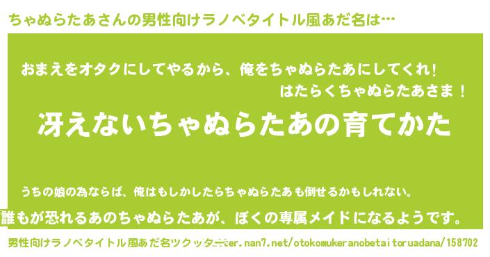 | 女子向けラノベタイトル風あだ名 | 『男装ちゃぬらたあの憂鬱な任務』 |