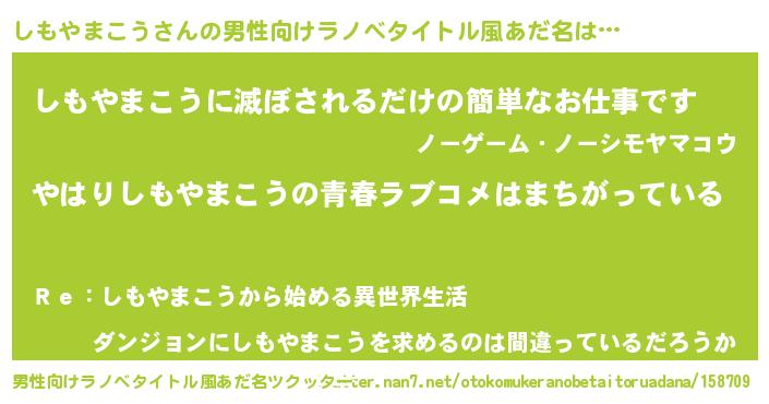 | 肩書あだ名 | 『しもやまこう総理大臣』 |