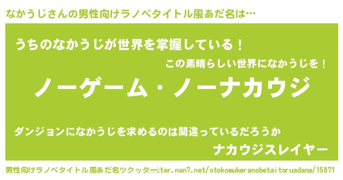 | 女子向けラノベタイトル風あだ名 | 『死神なかうじの再婚』 |