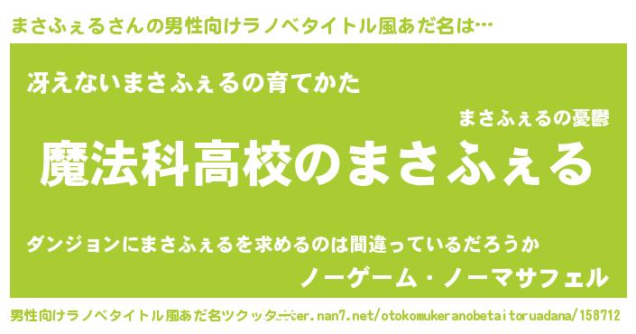 | 女子向けラノベタイトル風あだ名 | 『まさふぇるなんてお断りですっ。』 |