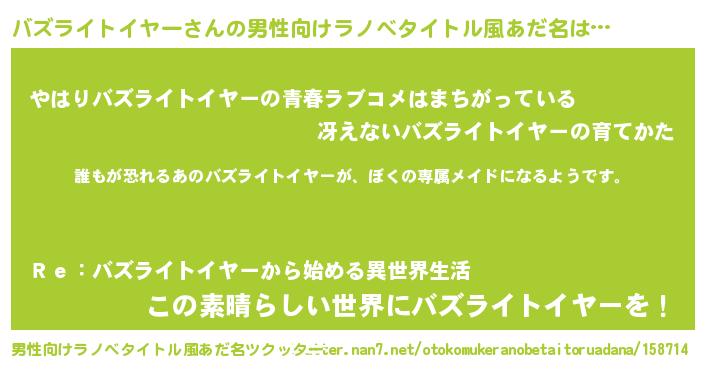 | 意味不明あだ名 | 『永久保存バズライトイヤー』 |