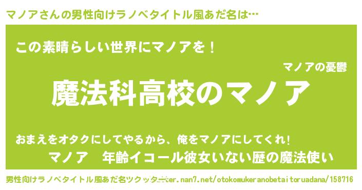 | ヒーロー風カッコイイあだ名 | 『超時空戦士マノア』『仮面マノダー』 |