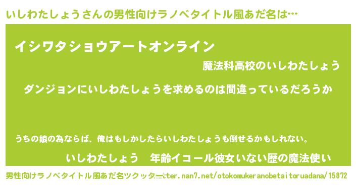 | 女子向けラノベタイトル風あだ名 | 『いしわたしょうは平凡を望む』 |