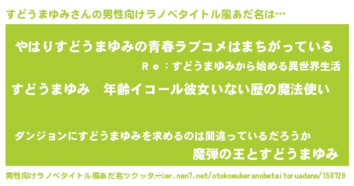 | 女子向けラノベタイトル風あだ名 | 『すどうまゆみの玉の輿計画!』 |