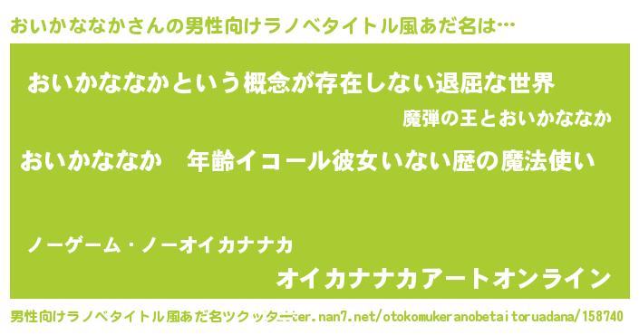 | ヘコむあだ名 | 『おいかななか(小並感)』『おいもー』 |
