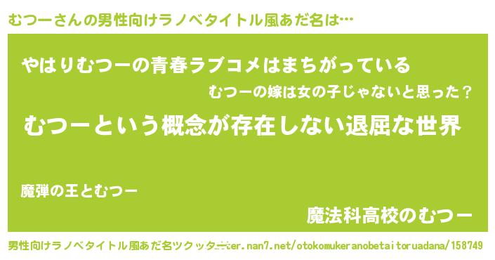 | 胡散臭い通販商品みたいなあだ名 | 『来世でも幸せになれる健康食品…その名も「むつー」』 |