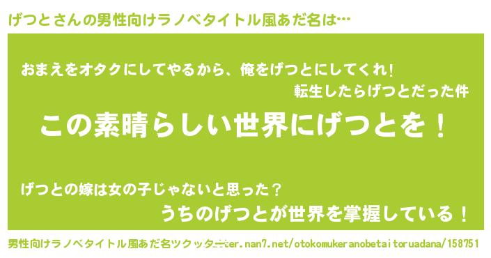 | 意味不明あだ名 | 『住所不定無職げつと(68歳)』 |