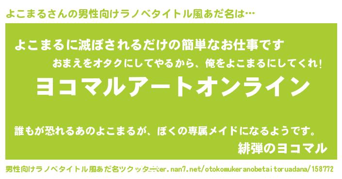 | 胡散臭い通販商品みたいなあだ名 | 『モテモテ間違いなし霊験あらたかなお札…その名も「よこまる」』 |