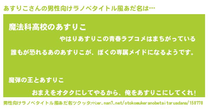 | 伝説のあだ名 | 『古文書に記された勇者あすりこ』 |