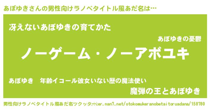 | 女子向けラノベタイトル風あだ名 | 『あぼゆき恋絵巻』 |
