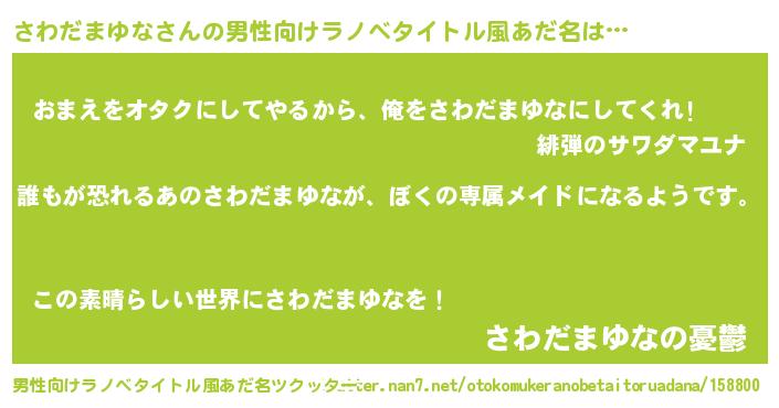 | ヘコむあだ名 | 『さわだまゆな(遠い目)』『さわにゅー』 |