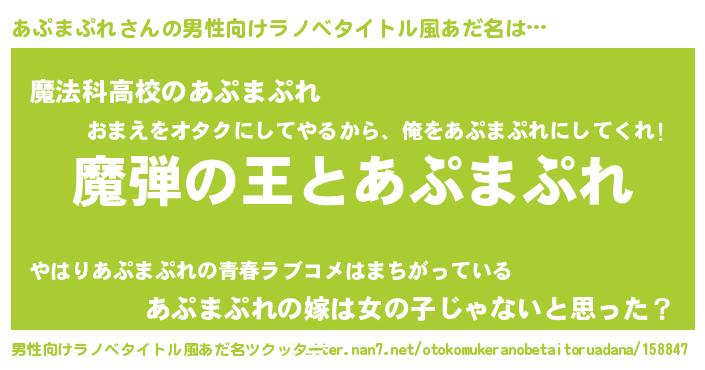 | ヒーロー風カッコイイあだ名 | 『仮面アプダー』『幻影騎士アプ』 |